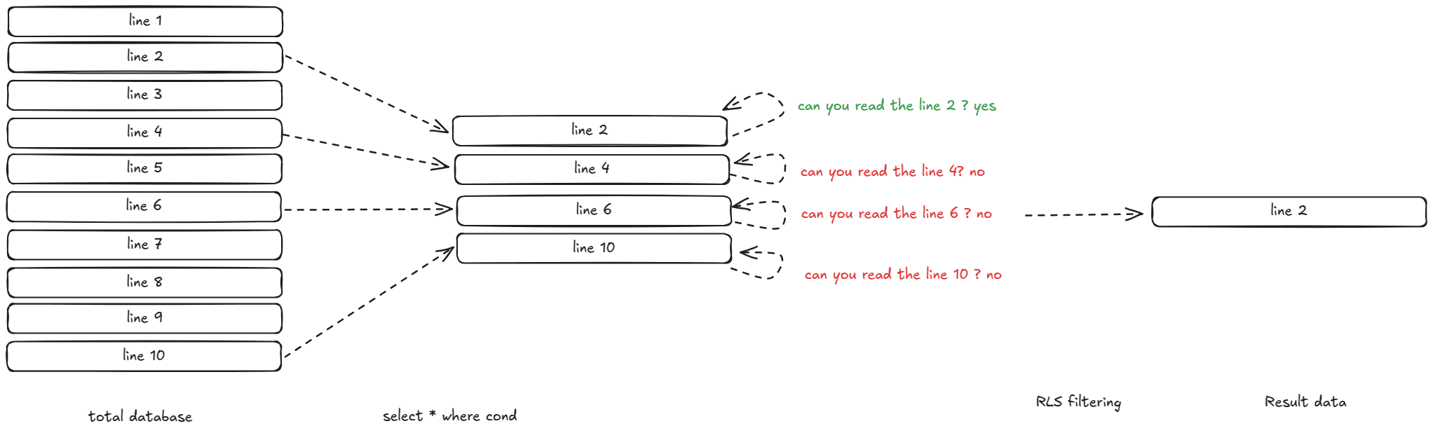SELECT * FROM documentThis looks good, and sound very scalable. And for this example, you would be right. In term of performance I would also argue that you lost nothing because the Postgres is so smart, I’m 99.99% sure it’s translated the RLS in some kind of “where” a like in the planning phase. So it would not make any difference for the end user in this example.