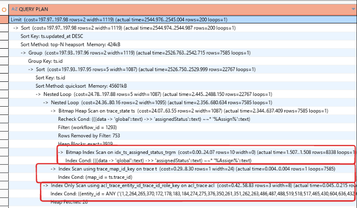This is what a simple explain analyze was giving us for a basic workflow overview request :